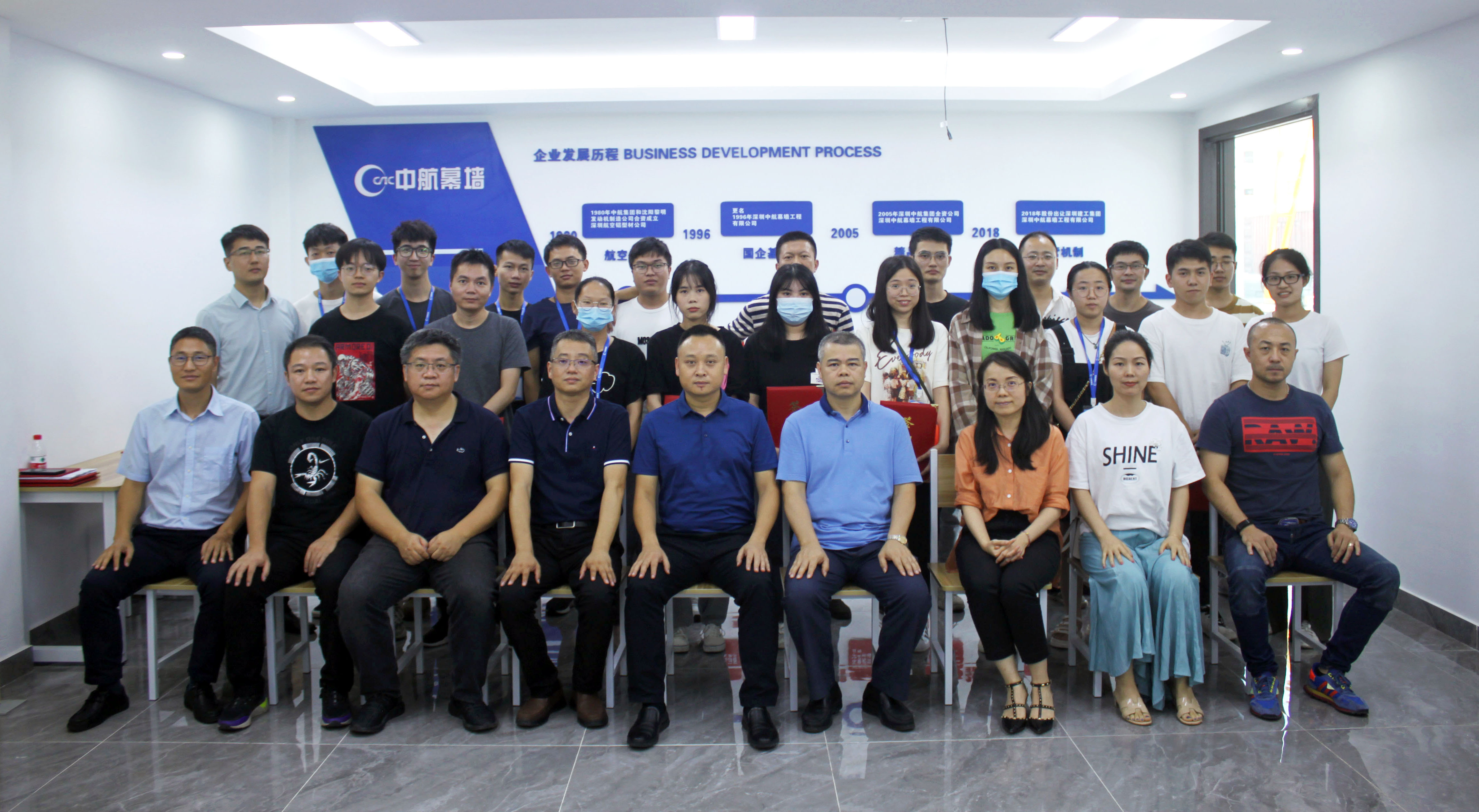 会议第二环节,公司总工程师刘晓烽详细介绍了幕墙行业及未来发展趋势,并带领新生参观东莞生产加工厂房,识别各类样件、了解幕墙、门窗生产设备以及规范化、标准化的项目运营管理体系等。通过参观公司荣誉墙方式让感受到企业的精神文化内涵,进一步增强了对公司企业文化的归属感与认同感。